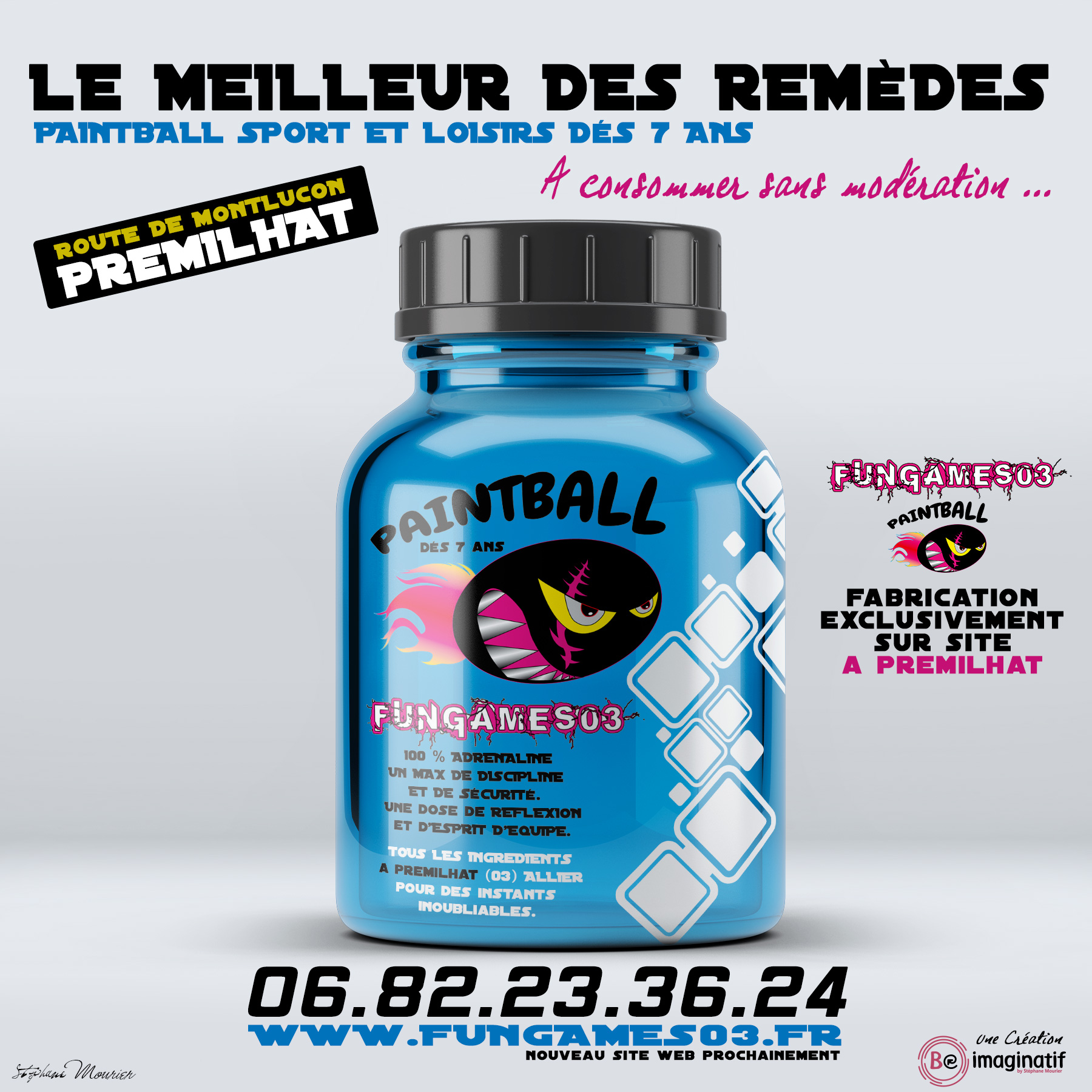 A proximité de Montluçon (2 minutes), la société FunGames 03 implantée à Prémilhat (03) vous propose un espace de sport et loisir dédié 100% au Paintball.